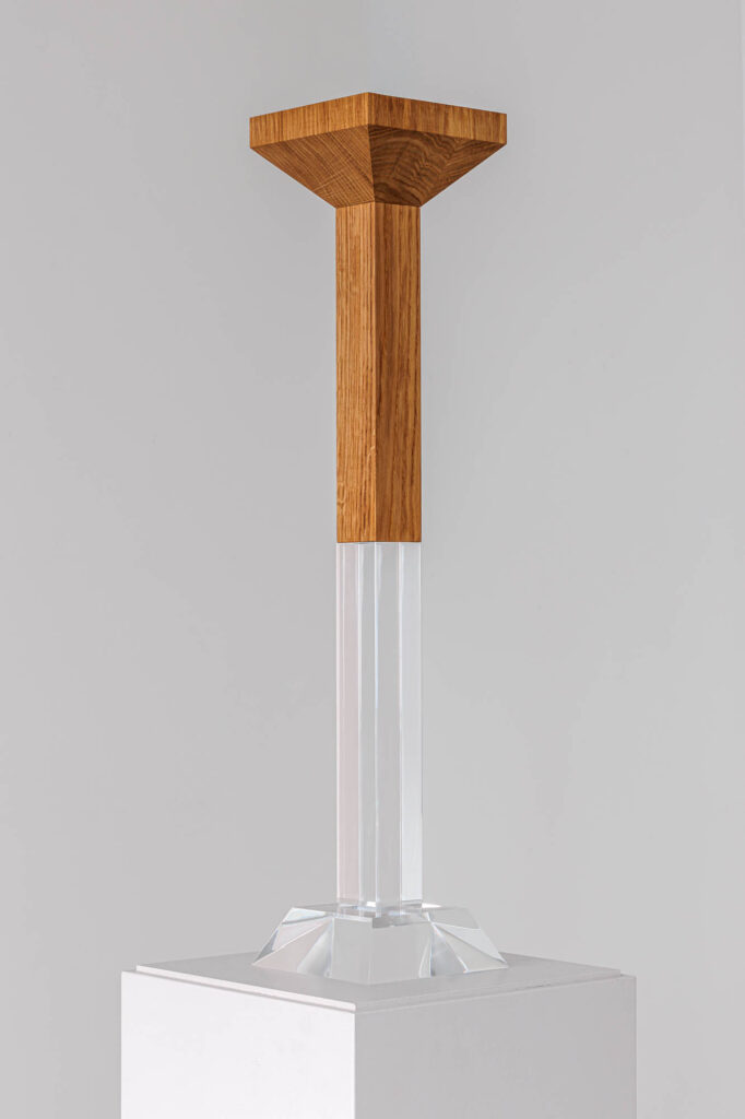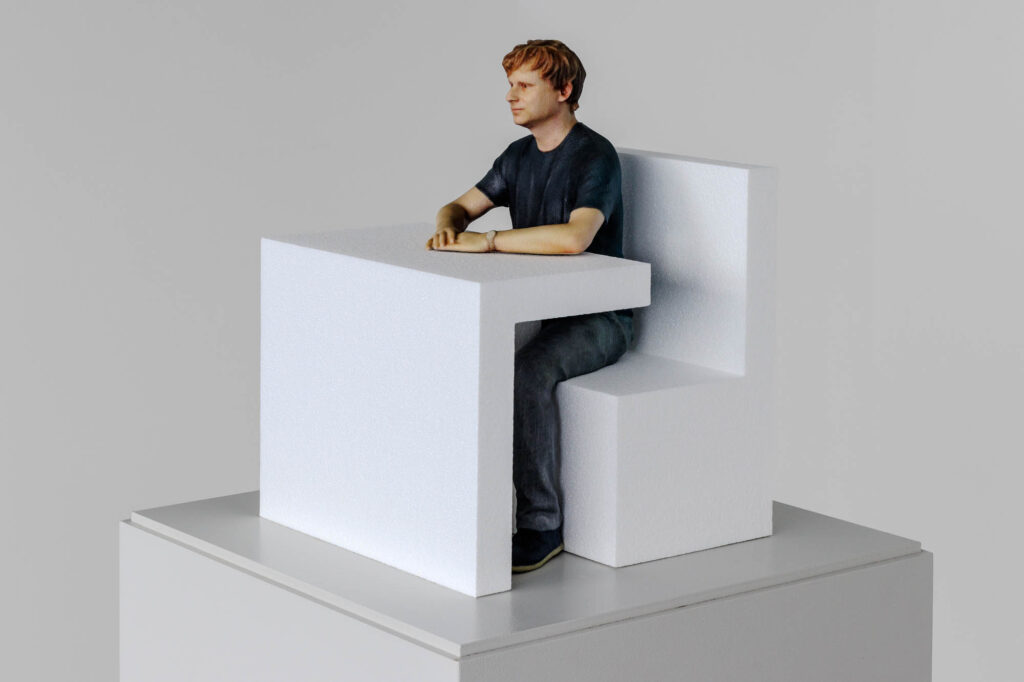 Werkangaben: Stuhl, aus dem man nicht aufstehen kann (Maquette) Styropor und 3D-Druck, 2023